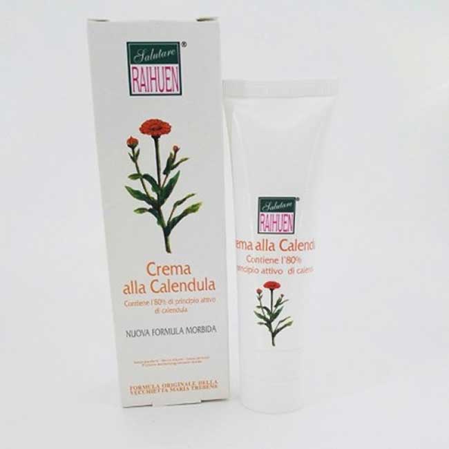 La crema alla calendula è un vero e proprio balsamo per la pelle, poiché la aiuta nel difficile compito di rigenerare le cellule epidermiche. Contiene un'elevata percentuale di oleolito di calendula (il 20%), potente antinfiammatorio della pelle. Consigliato a chi presenta irritazioni alla pelle (irritazioni inguinali, irritazioni da pannolino nei neonati, irritazioni cutanee tipiche di chi è costretto a letto, scottature solari, dermatiti, arrossamenti della pelle del viso...).