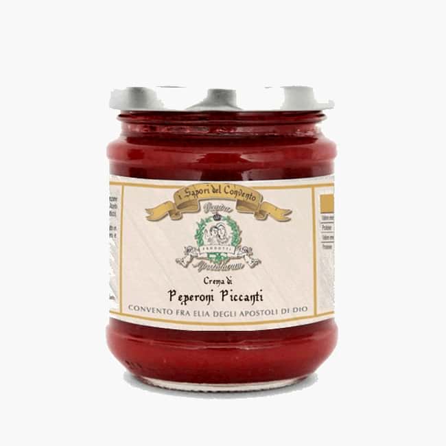 Tanto la Crema di Peperoni si caratterizza per il suo sapore delicato, quanto la Crema di Peperoni Piccanti si contraddistingue per il suo gusto deciso è in grado di soddisfare il palato più; esigente. Gli ingredienti sono ridotti al minimo per restituire tutti i sapori dei vegetali di partenza, l'utilizzo più indicato è sicuramente la creazione di sfiziosi crostini caldi nonché ovviamente, il condimento dei primi piatti.
