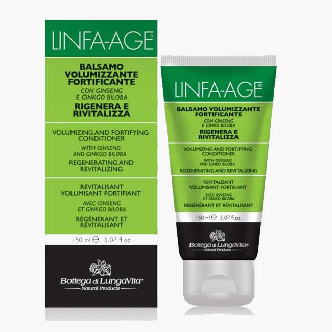 Linfa Age Balsamo Volumizzante Fortificante è una leggerissima formulazione a base di Ginseng e Ginkgo Biloba dall'azione rinforzante e volumizzante. Protegge e riequilibra i capelli senza appesantirli, lasciandoli leggeri dalla radice alle punte donando un aspetto sano e brillante. Balsamo arricchito con estratti tonico-stimolanti di Ginseng e Gingo Biloba dal forte potere bioenergizzante e nutritivo, sia per il follicolo che per il fusto del capello. In aggiunta ad essi, la formulazione contiene le Proteine della Seta, un potente pool di aminoacidi ad attività rinvigorente e protettiva che riequilibra la chioma senza appesantirla e dona lucentezza e volume ai capelli. Per le sue proprietà condizionanti e per la sua texture leggera il Balsamo Fortificante Linfa Age è indicato in tutte le forme di debolezza vitale dei capelli, poiché contribuisce al ripristino delle sue naturali proprietà fisiologiche. In abbinamento al proprio shampoo, l'impacco con il Balsamo Fortificante Linfa Age, dona lucentezza, volume e pettinabilità. Ideale per rinforzare i capelli deboli dalla radice allo stelo, stimolare e dare volume ai capelli sottili, contrastare l'invecchiamento ossidativo del capello, proteggere e dare forza e sostegno ai capelli sottili.