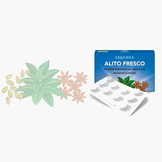 È un fenomeno assai frequente quello di provare la sensazione di avere un alito non sempre fresco e profumato come si desidererebbe. I motivi potrebbero essere numerosi: residui di cibo tra i denti, non opportunamente rimossi con i quotidiani gesti di igiene orale, problemi dentali, ma anche più semplicemente il consumo di aglio, cipolla e spezie, ricchi di sostanze odorose e volatili, che dopo essere state assorbite, vengono riemesse dai polmoni con l’aria che espiriamo. Certamente non concorrono a un alito profumato il fumo, un eccessivo consumo di alcol e talvolta l’assunzione di alcuni farmaci che provocano la secchezza della bocca; mentre è più che mai evidente che favorire una fisiologica funzione digestiva si rivela una scelta positiva. Quindi meglio evitare i digiuni, scegliere una dieta varia ed equilibrata, ricca di frutta fresca e verdure, e consumare acqua in abbondanza. Una corretta igiene dentale e periodiche visite dal dentista aiutano a scongiurare sicuramente questo fastidio. In più, ecco una buona notizia per chi desidera mantenere un alito davvero “in forma”: Erbamea ha scelto di formulare delle tavolette masticabili che contengono Mentolo e preziosi Oli essenziali.