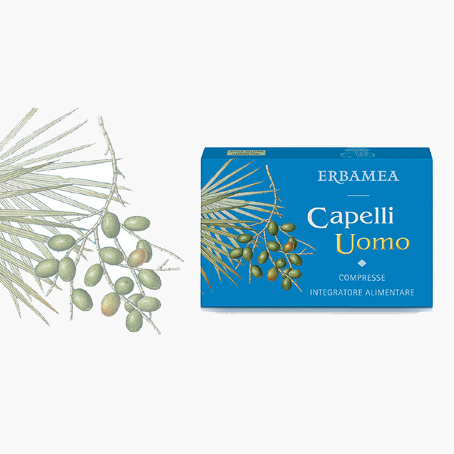 Anche gli uomini hanno un'attenzione molto speciale per loro ed è una preoccupazione non da poco vederli diradare. Cadono ogni giorno naturalmente circa 100 capelli senza che ciò rappresenti un problema, e in primavera ed autunno è normale che se ne perda qualcuno in più; quando però diventano più fragili e la loro caduta più consistente, non si può evitare di correre ai ripari. Si può scegliere per esempio di seguire una dieta equilibrata e un sano stile di vita, di trattarli con prodotti cosmetici delicati e di qualità, di proteggerli da inquinamento e raggi UV d'estate, e soprattutto di associare un integratore specifico. Erbamea propone Capelli Uomo a base di estratto secco di Miglio utile per il benessere dei capelli, in associazione con estratti secchi di frutti di Serenoa e radice di Ortica, L-Cisteina, Vitamina B6 e Acido pantotenico. Una formula che si completa con Biotina e Zinco, che contribuiscono al mantenimento di capelli sani, e Rame che aiuta la normale pigmentazione dei capelli.