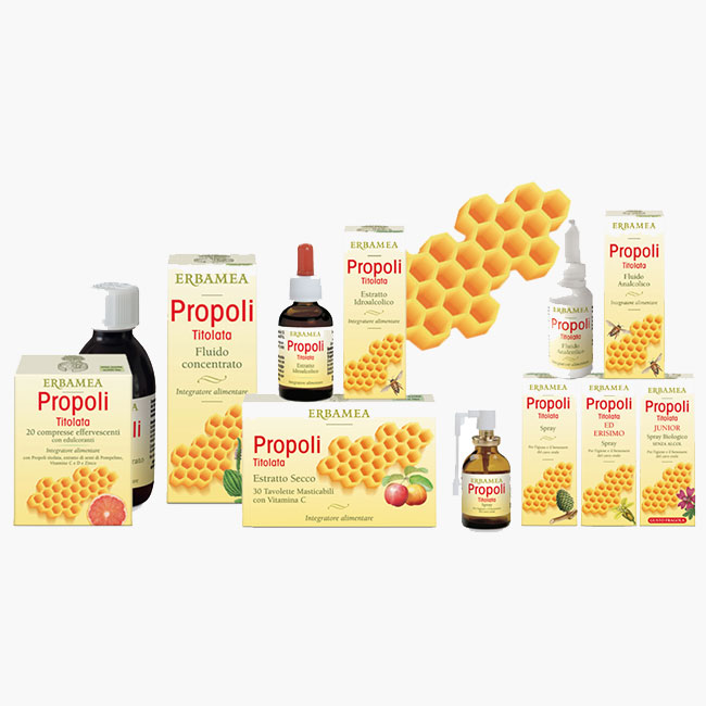 | INDICAZIONI | In natura, alle api bottinatrici è affidato il compito di raccogliere sulle piante i materiali resinosi e cerosi con cui poi le api operaie produrranno la Propoli. Utilizzata per ricoprire le pareti dell'alveare, per riempire fessure e fori, per lucidare le celle prima che l'ape regina vi deponga le uova, la Propoli è indispensabile per l'alveare; ma non solo, per la sua ricchezza di sostanze efficaci ed essenze balsamicoaromatiche, è apprezzata fin dalle epoche più antiche anche dall'uomo. Per beneficiare delle sue preziose virtù, Erbamea propone una linea di prodotti a base di Propoli titolata e standardizzata nel contenuto dei suoi principi attivi, preziosi alleati del benessere dell'organismo. |