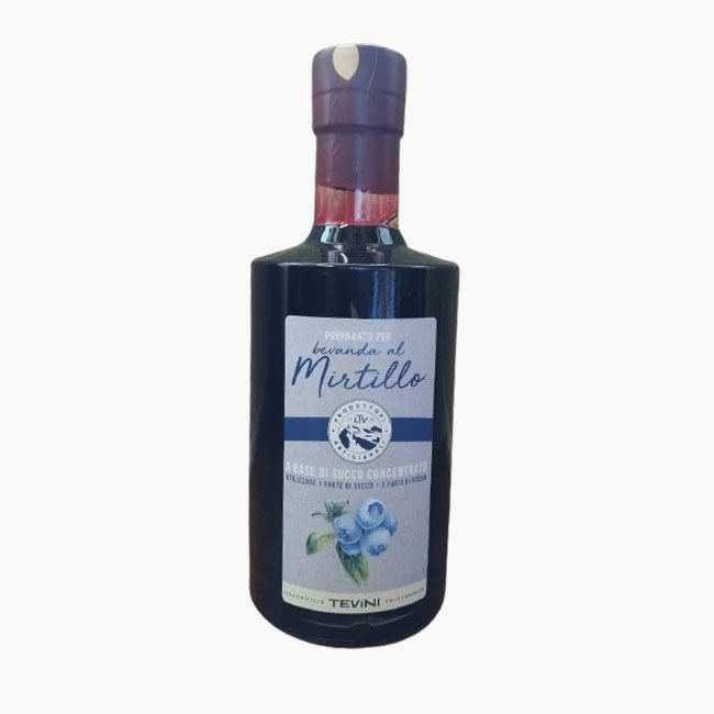 | INGREDIENTI | Succo naturale di mirtillo 300%, zucchero, acqua. Acidificante: succo di limone. Conservanti: E211, E202. |